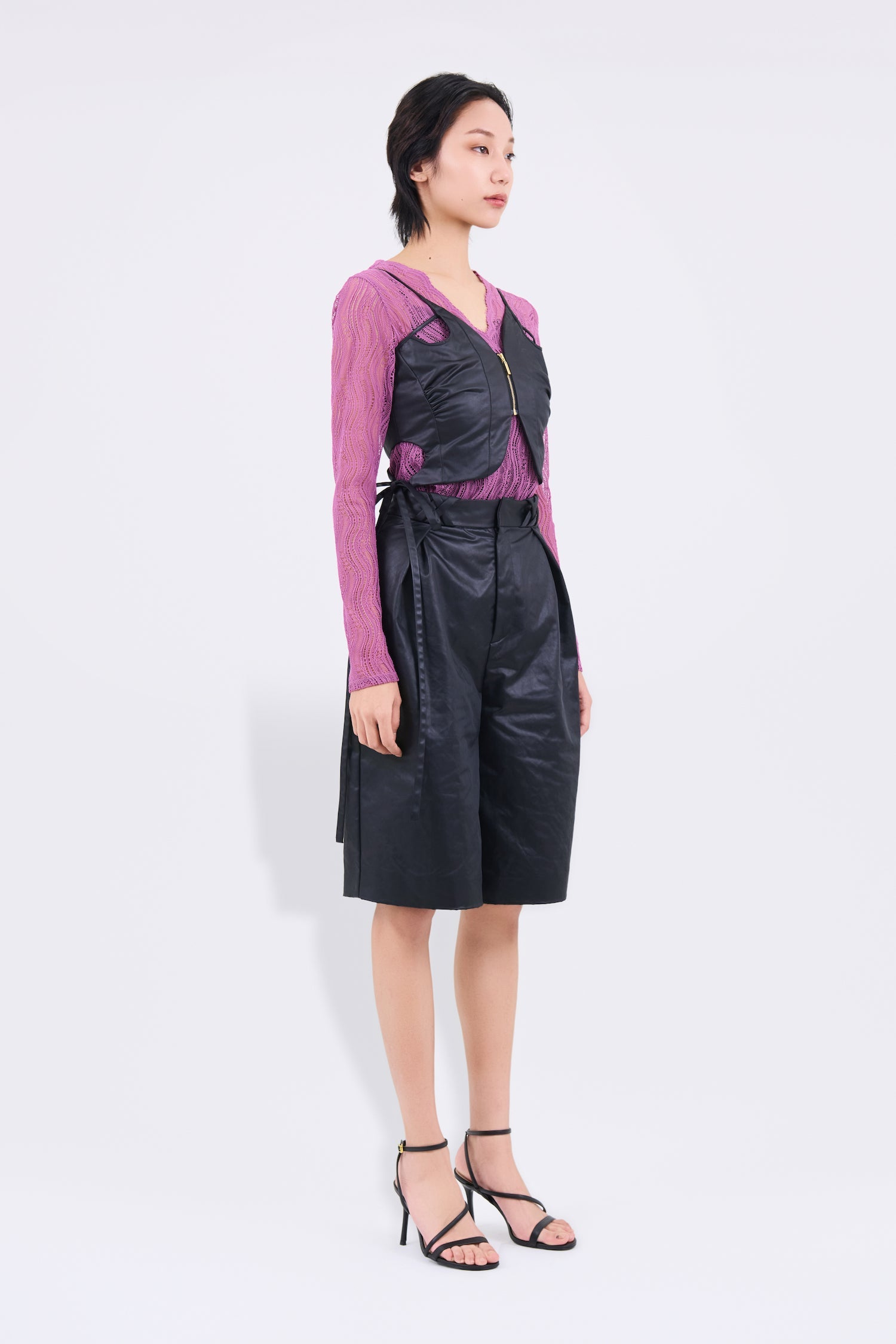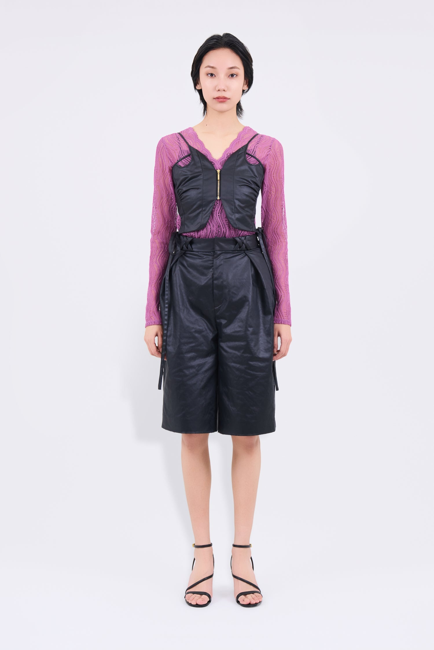 オリジナルカラーで染め上げたストレッチレースを使用したレーストップス。ミニマルなデザインでありながら、首元の抜け感を出すことで、上品で高級感のある仕上がりに。発色の良さを生かし様々なスタイリングのアレンジが可能な1着。