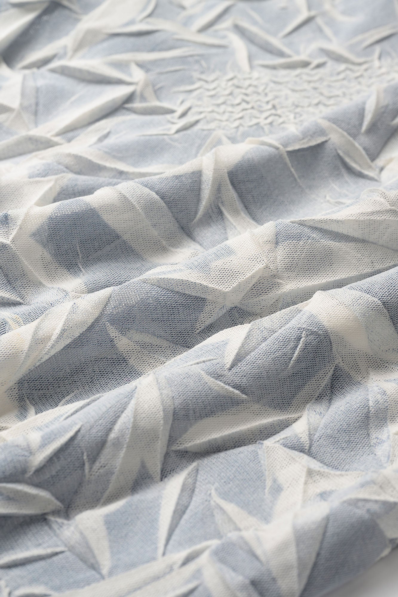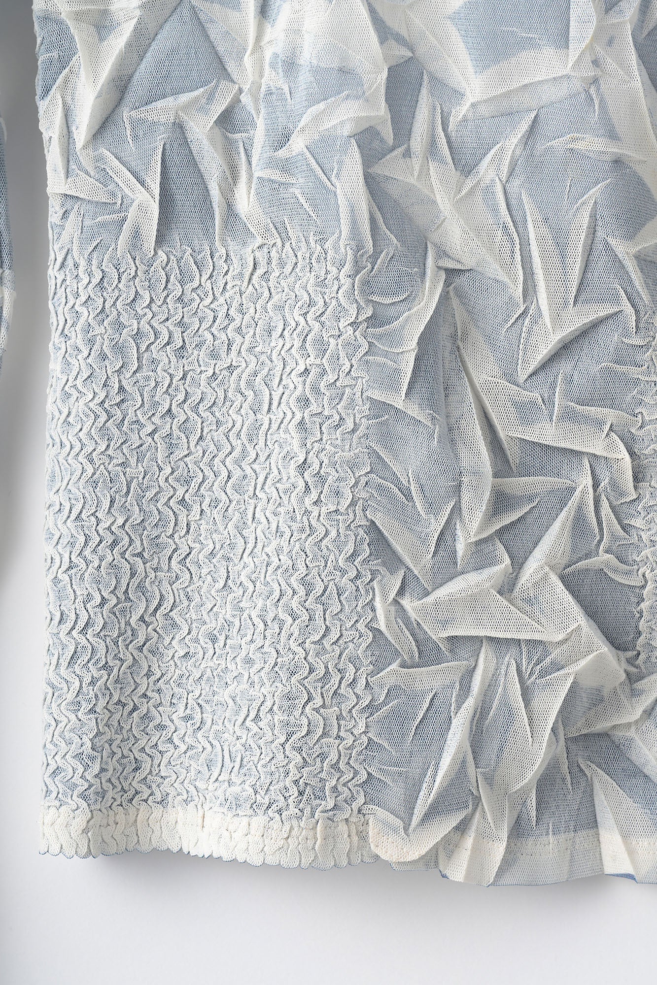 熱で縮む特殊なシートを使用し職人の手によりランダムなプリーツを表現。