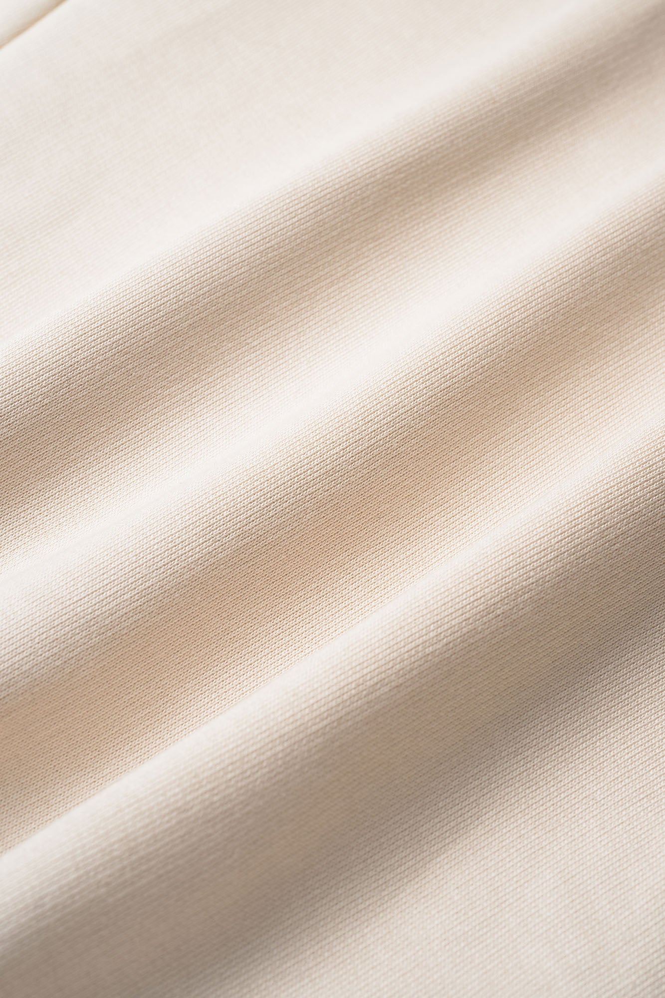 ショート丈のスウェットシャツはカレンダー加工を施し綺麗な落ち感とハリ感を持ち合わせた独特な生地を採用。