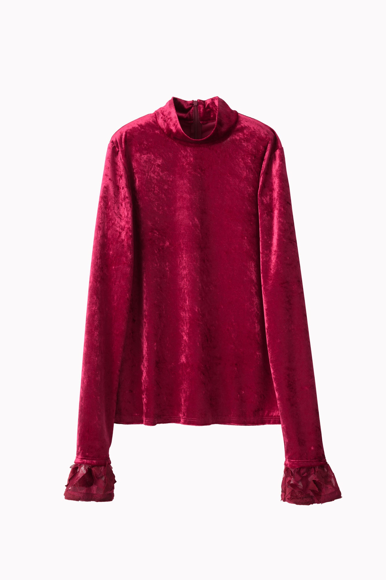 職人の感性と技術により生まれたエンブクロス刺繍の生地を袖口にアクセントとして使用したトップス。