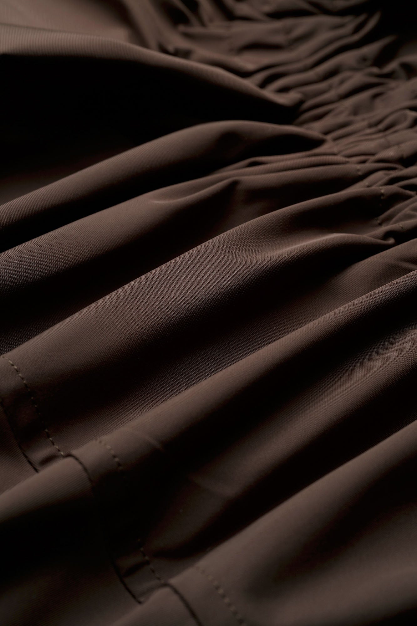 身頃やポケット部分に施された紐のディティールでシルエットや着丈の変化を楽しめる。