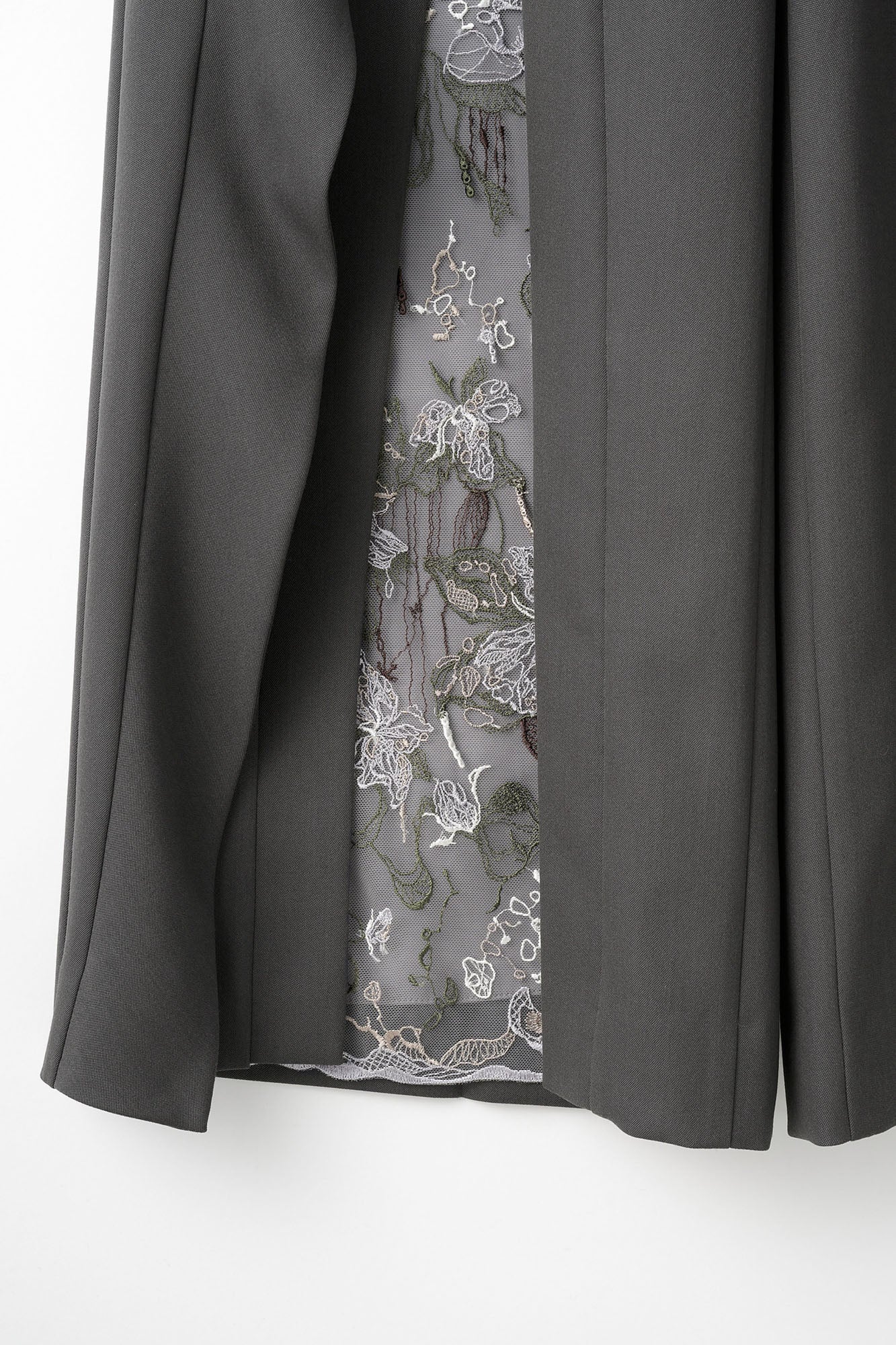 表地 : ポリエステル67%, ヴァージンウール31%, ポリウレタン2% / レース地 : 土台 ナイロン100%, 刺繍糸 レーヨン100% / 土台地 : ポリエステル100% / 裏地 : キュプラ100%