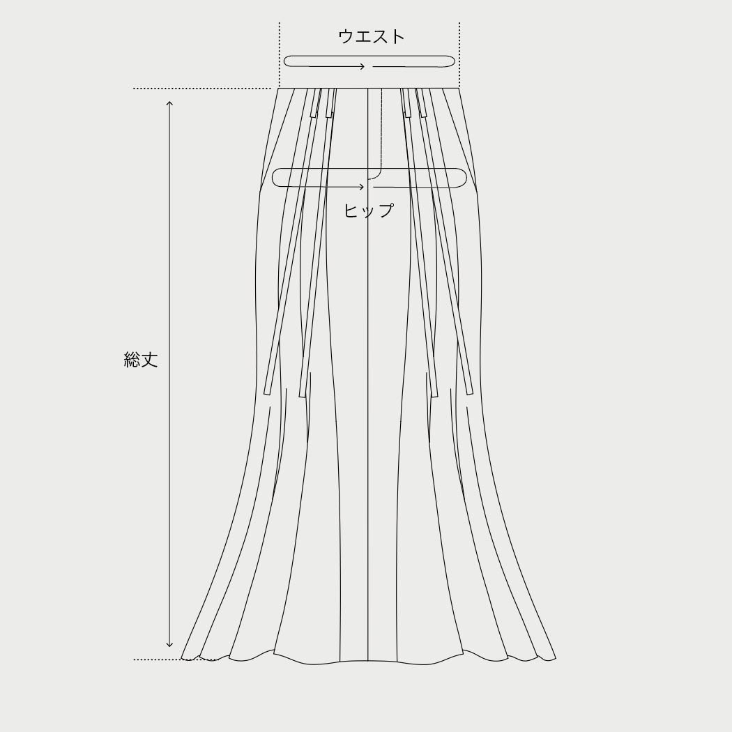 パネルの剥ぎ数を増やし、裾に向かって流れるような立体的なシルエット。
