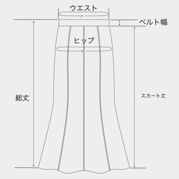 | ウエスト | ヒップ | 総丈 | ベルト幅 | スカート丈 | |