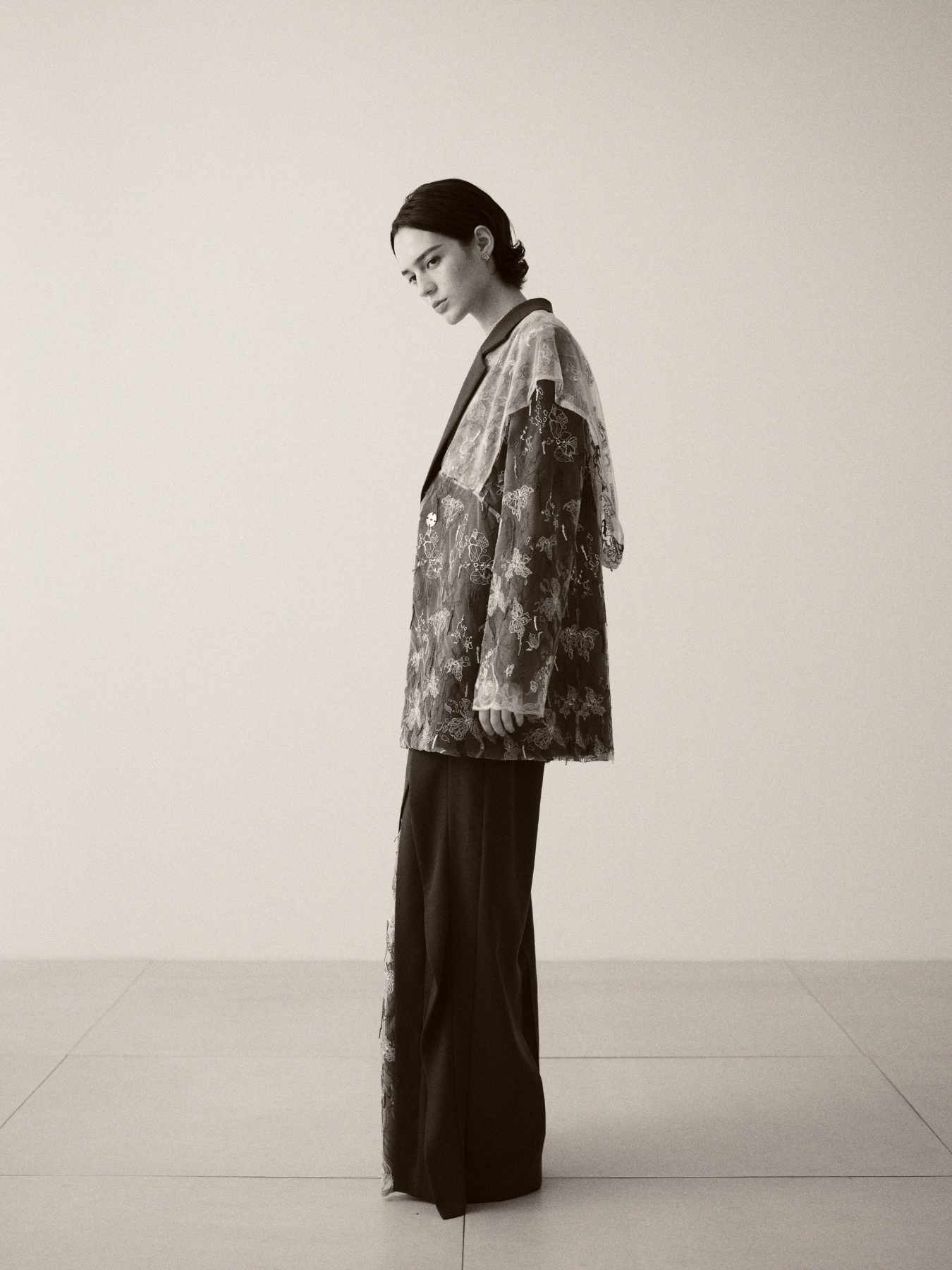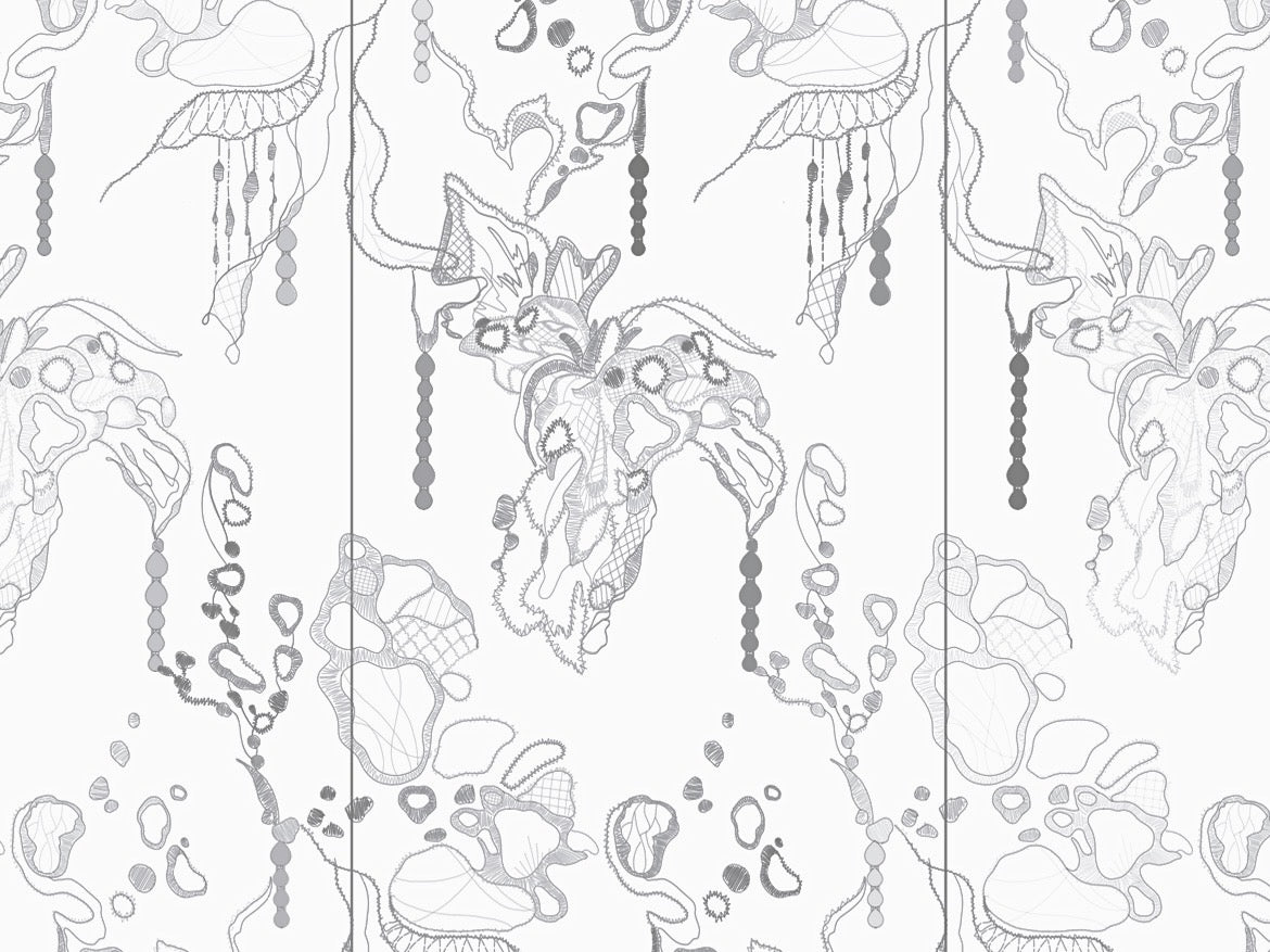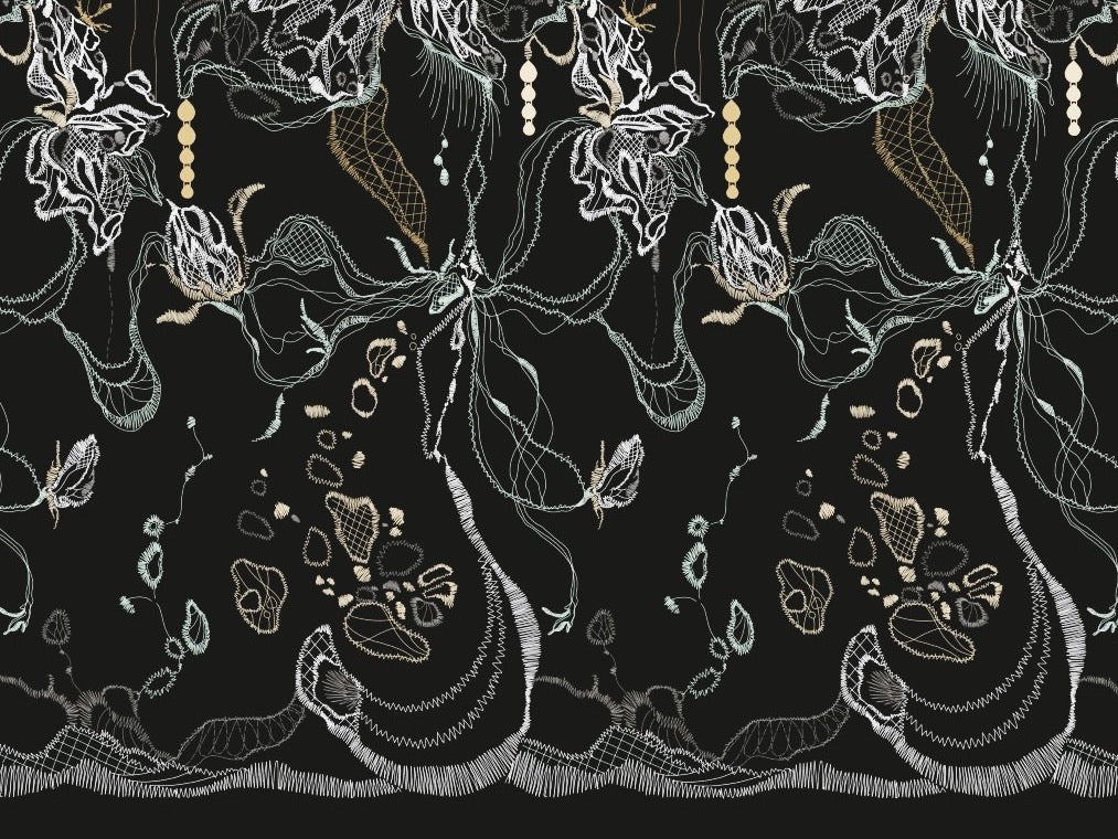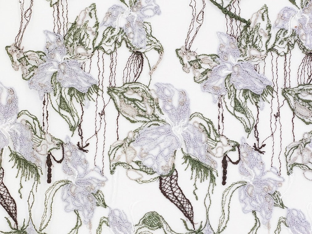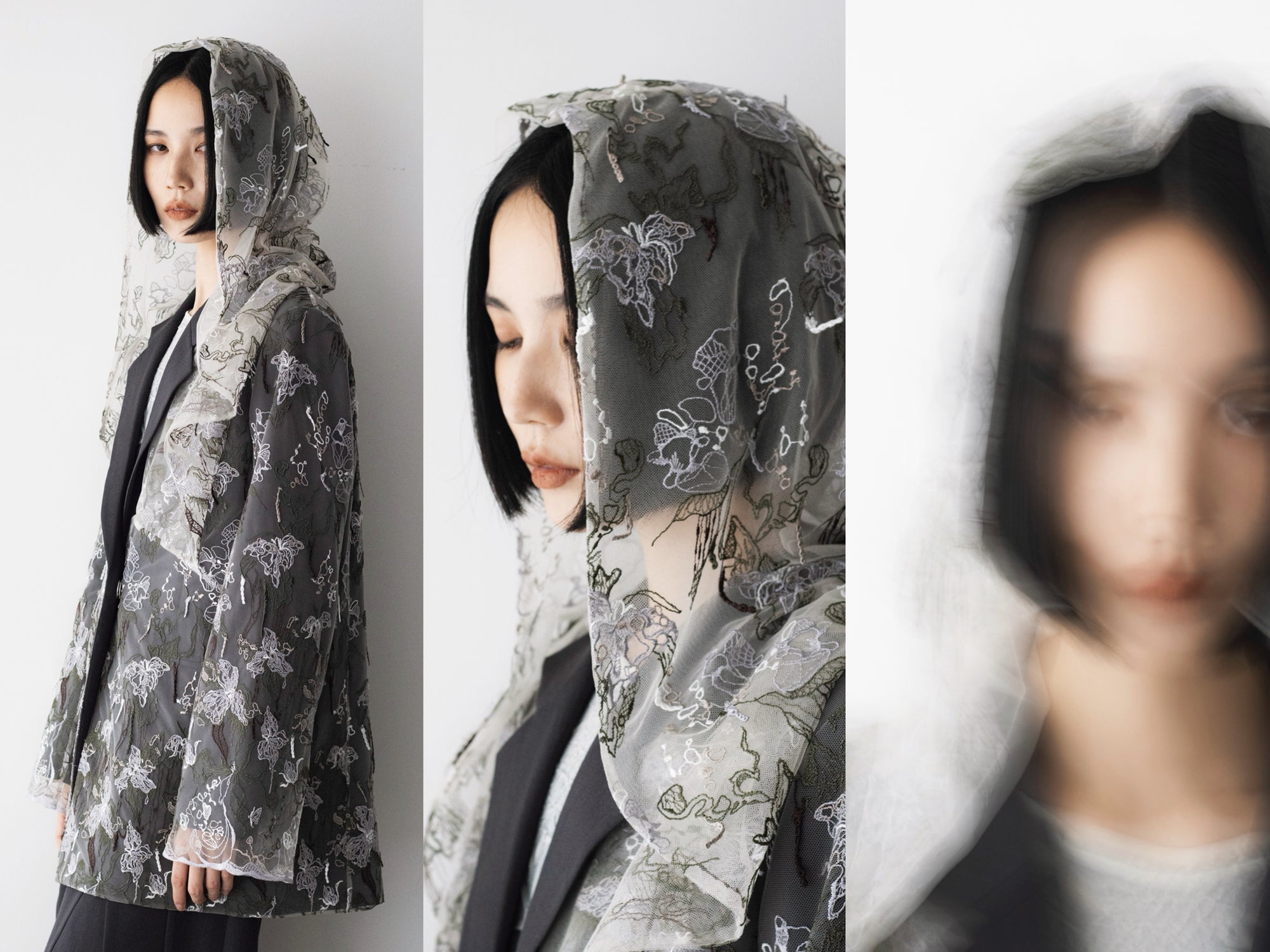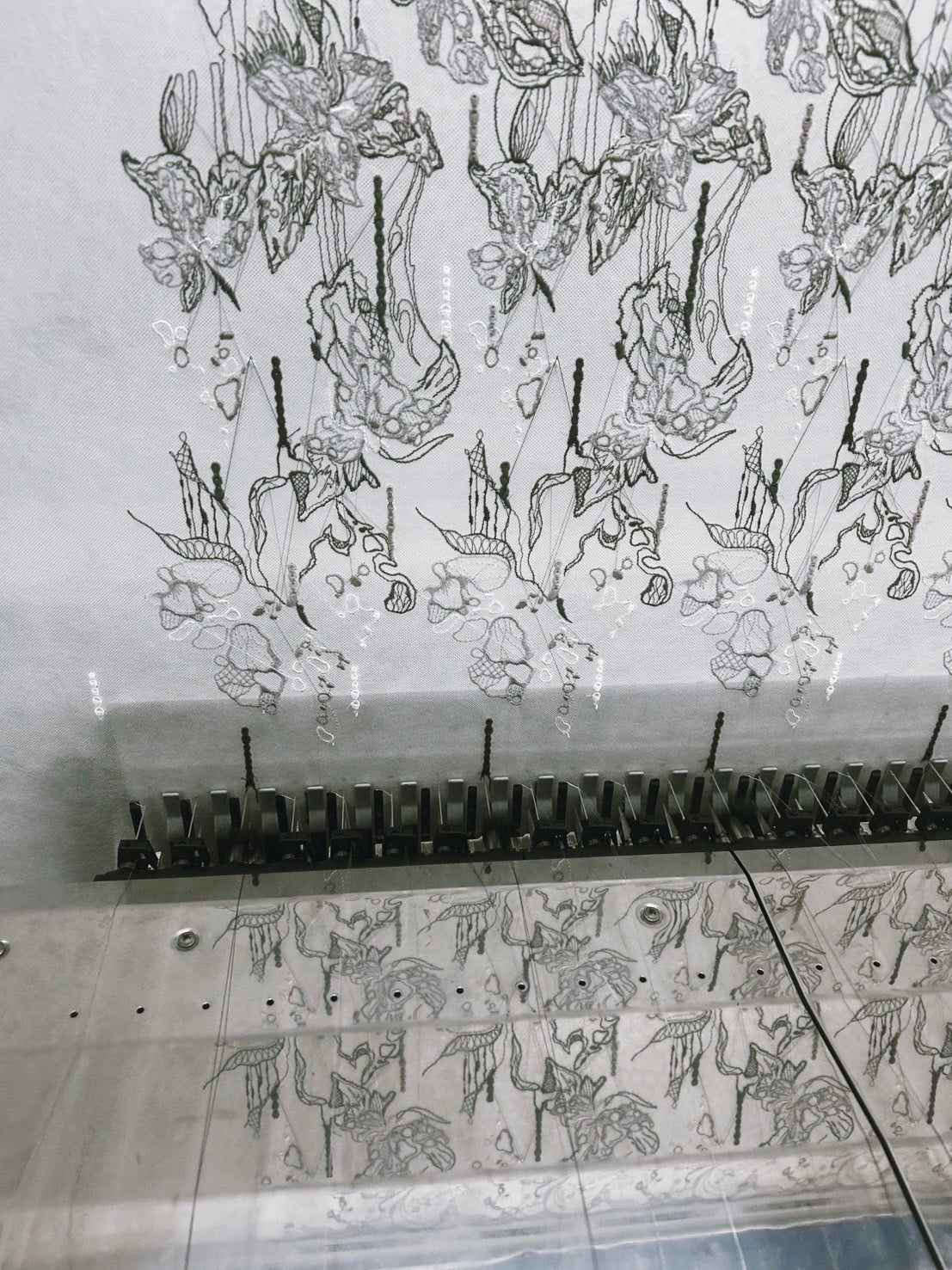ケミカルフリンジという刺繍技法を用いて立体的に表現しています。