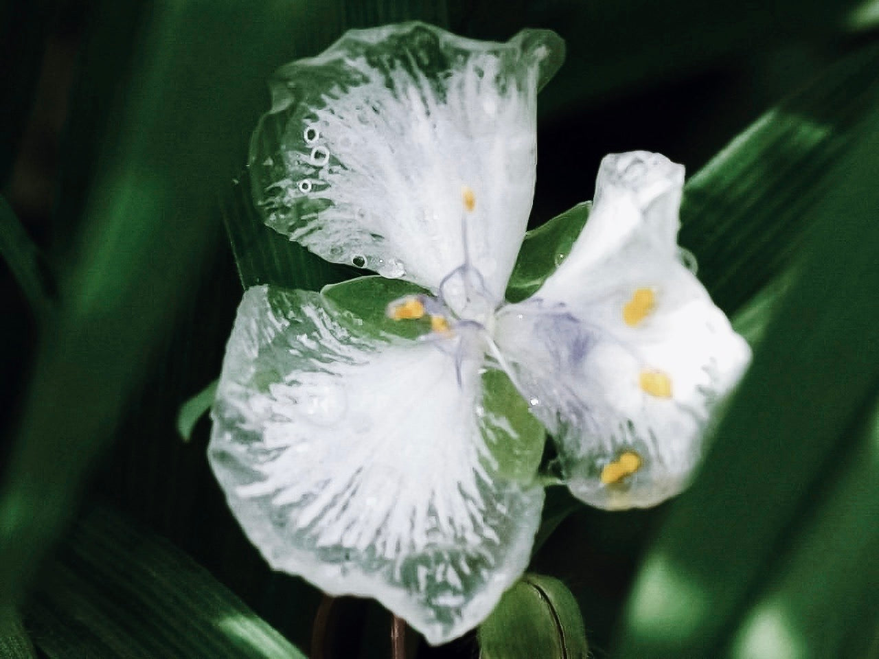 水分を含む事によって花の色が半透明へと変化するこの花は、