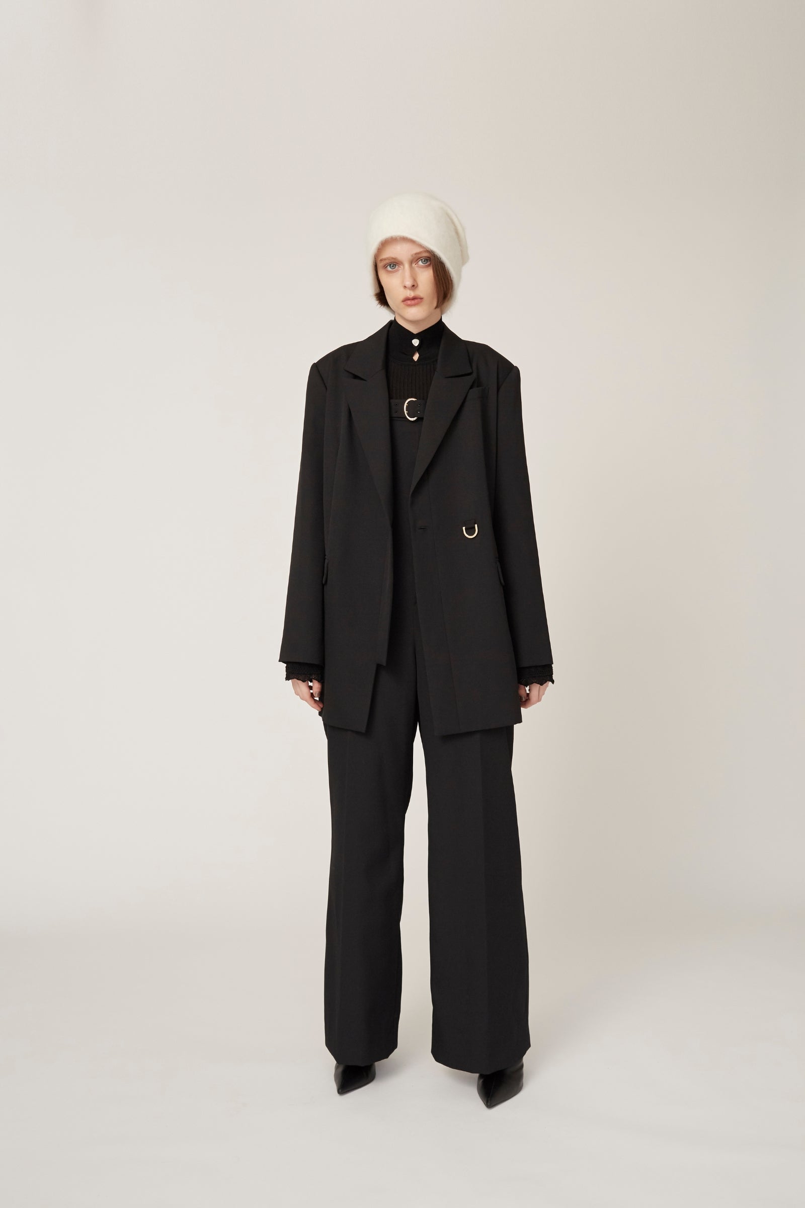 経糸と緯糸には2/60ウールを使い弾力を生み出すHARUTO加工を加える事でハリ感としなやかさの共存が実現。バスト部分にはゴム入りでサイズ調節が可能に。ベルトは取り外しが可能でサイズ調節の他、ウエストベルトとしても使用可能。普遍的なストレートラインはシーンを選ばずいつの時代にも彩りを与える。