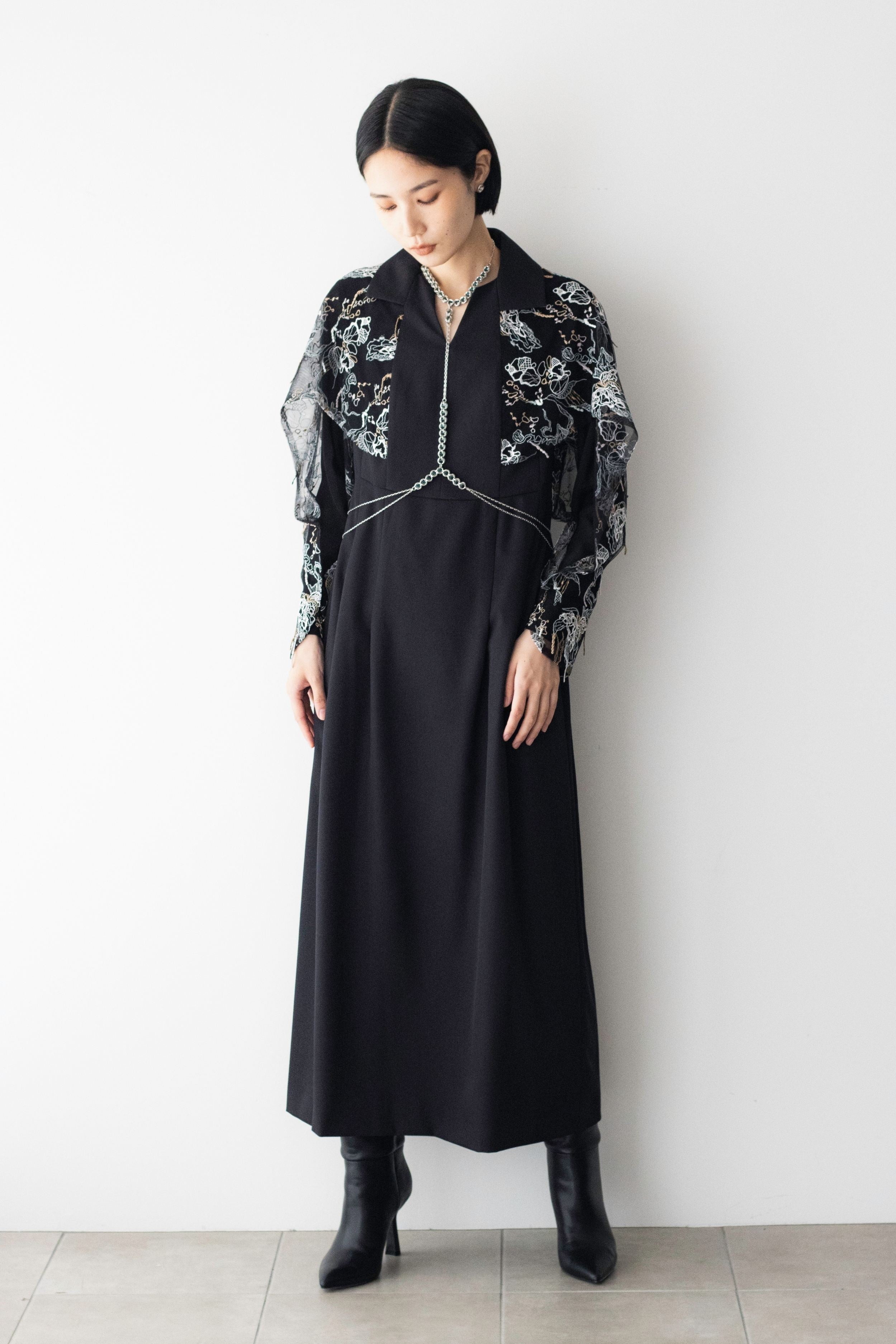 MURRALを象徴する繊細なエンブロイダリーレースを使用したドレス。