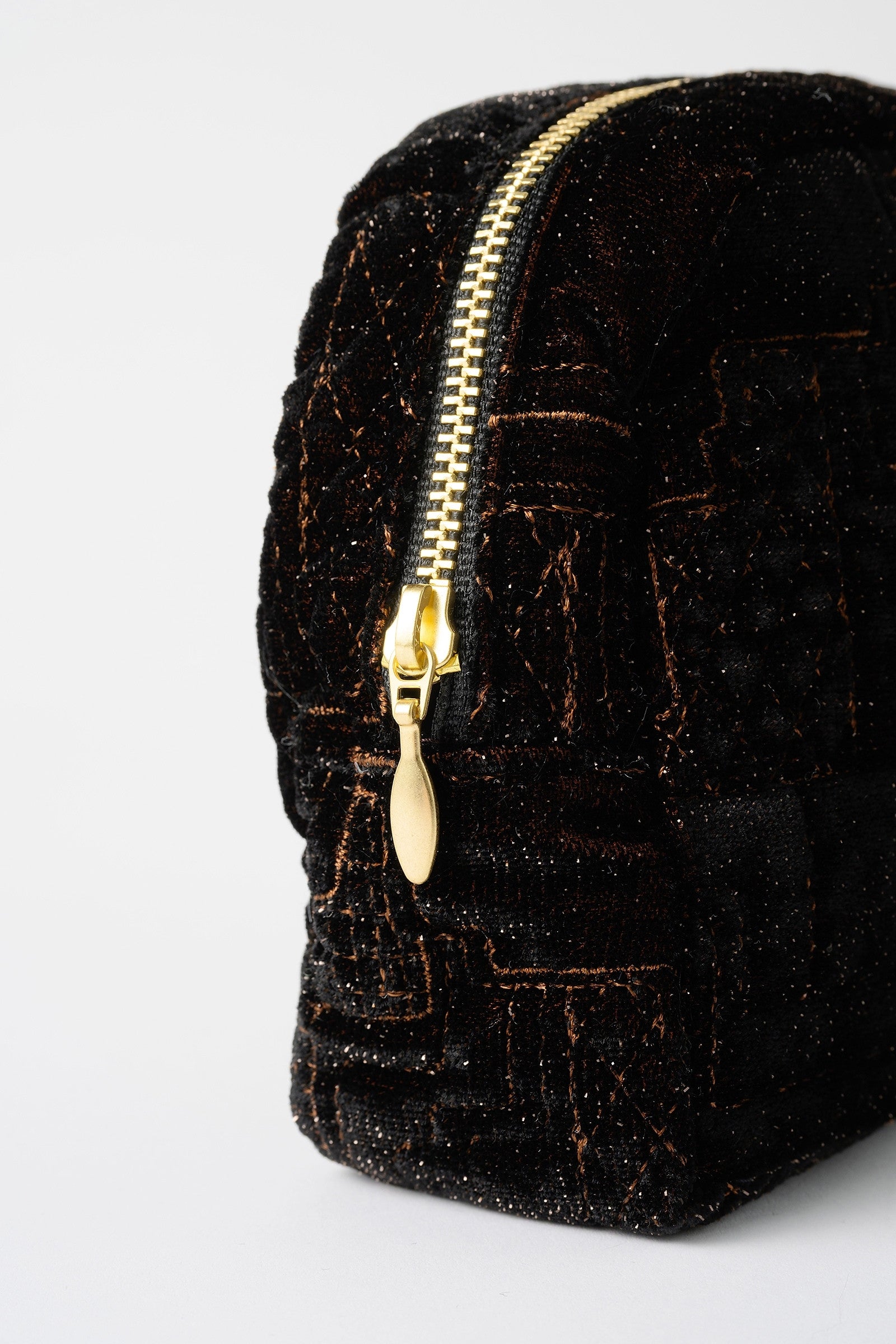 記号的に見える夜景をイメージし、キルト刺繍を施したオリジナルのベロア生地を使用した化粧ポーチ。