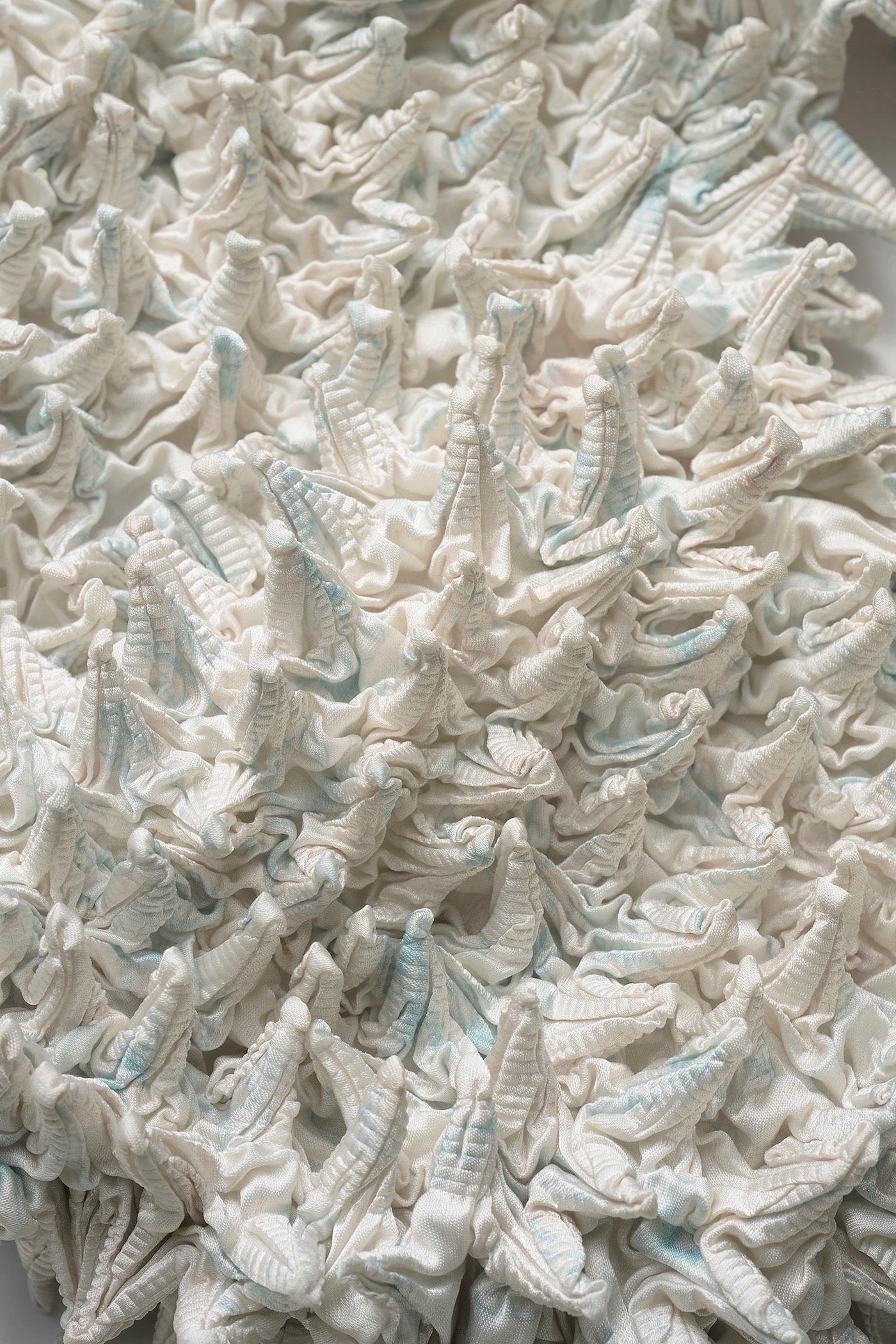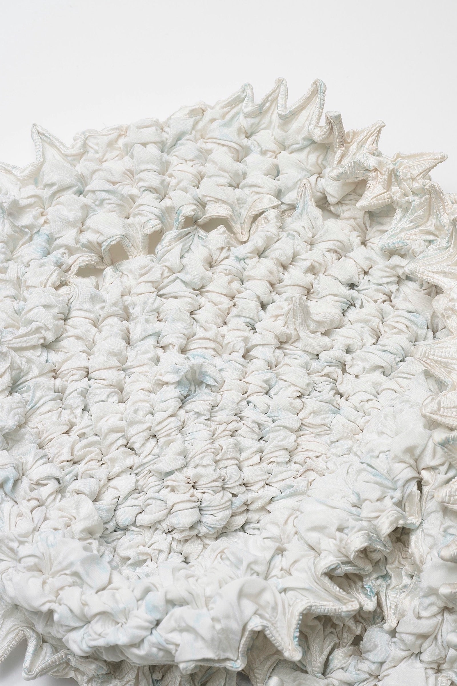 伝統工芸「京鹿の子絞り」から生まれる絞り染め特有の立体的なテクスチャーとフォルム。そこに宿っているのは確かな人の手による力強さと繊細な技術。