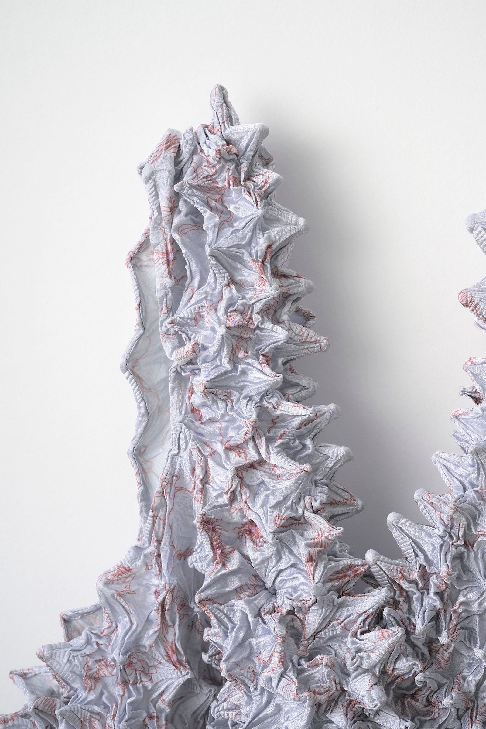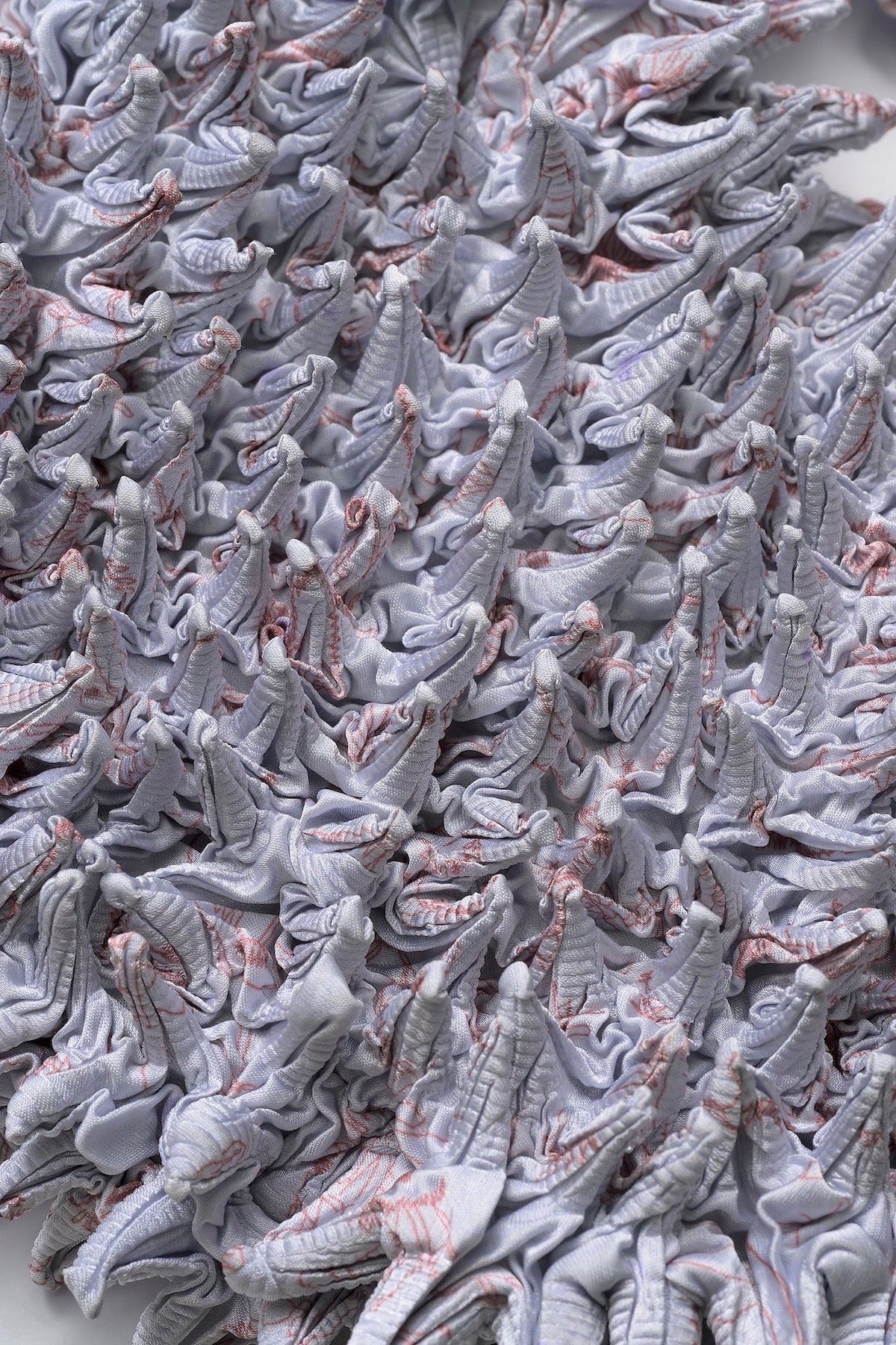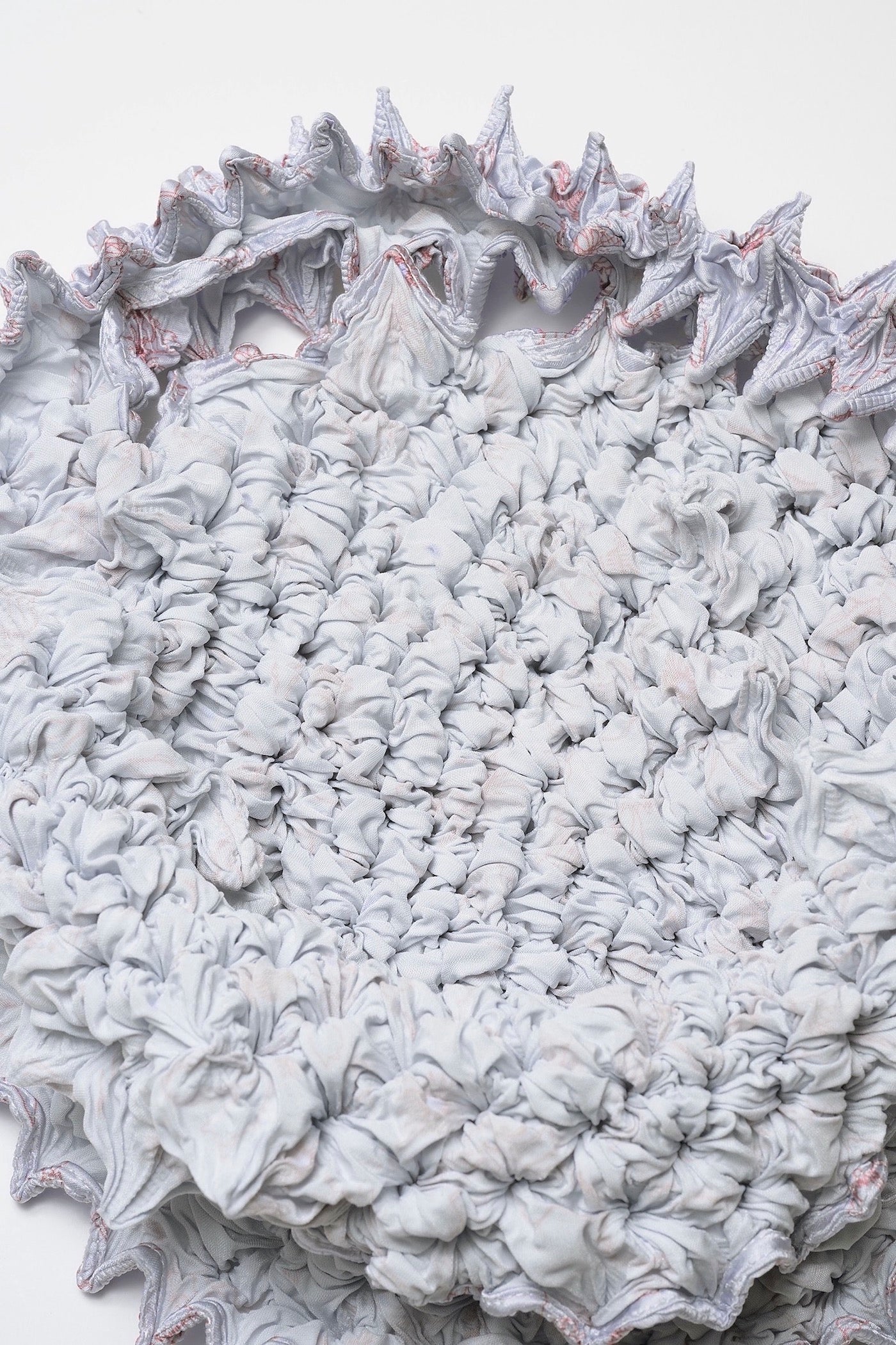 伝統工芸「京鹿の子絞り」から生まれる絞り染め特有の立体的なテクスチャーとフォルム。そこに宿っているのは確かな人の手による力強さと繊細な技術。
