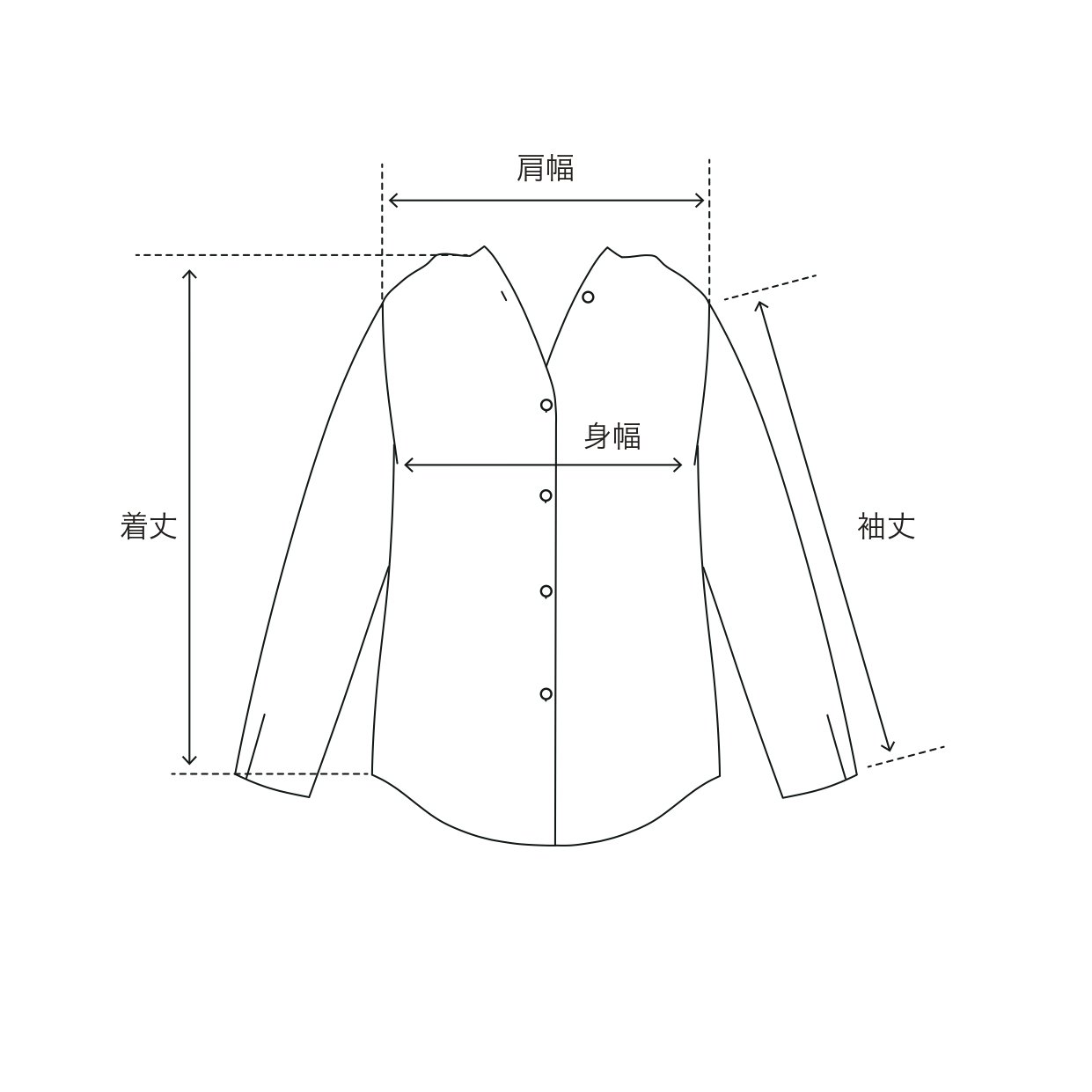 着丈 | 身幅 | 肩幅 | 袖丈 | |