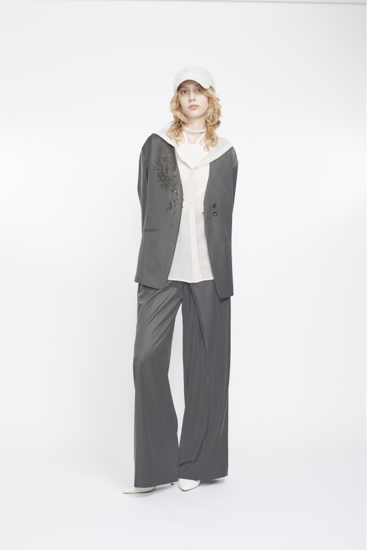 ユニークなパターンメイキングによって生み出されるシルエットを活かし、インナーとしてのアクセントや羽織りとしても着用頂けるスタイリングの幅が広がる1着。