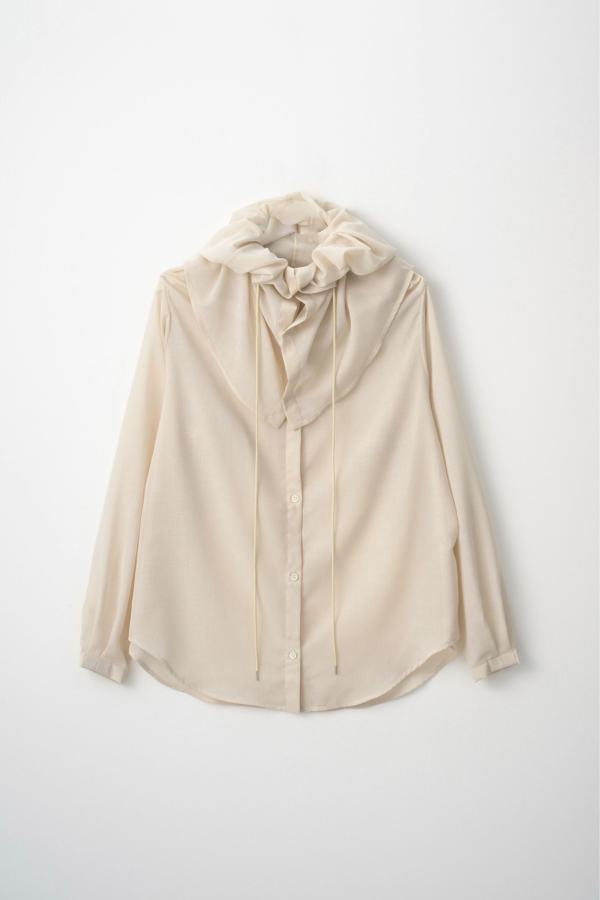 ドローストリングの調整により、フードボリュームの変化が楽しめるシャツブラウス。