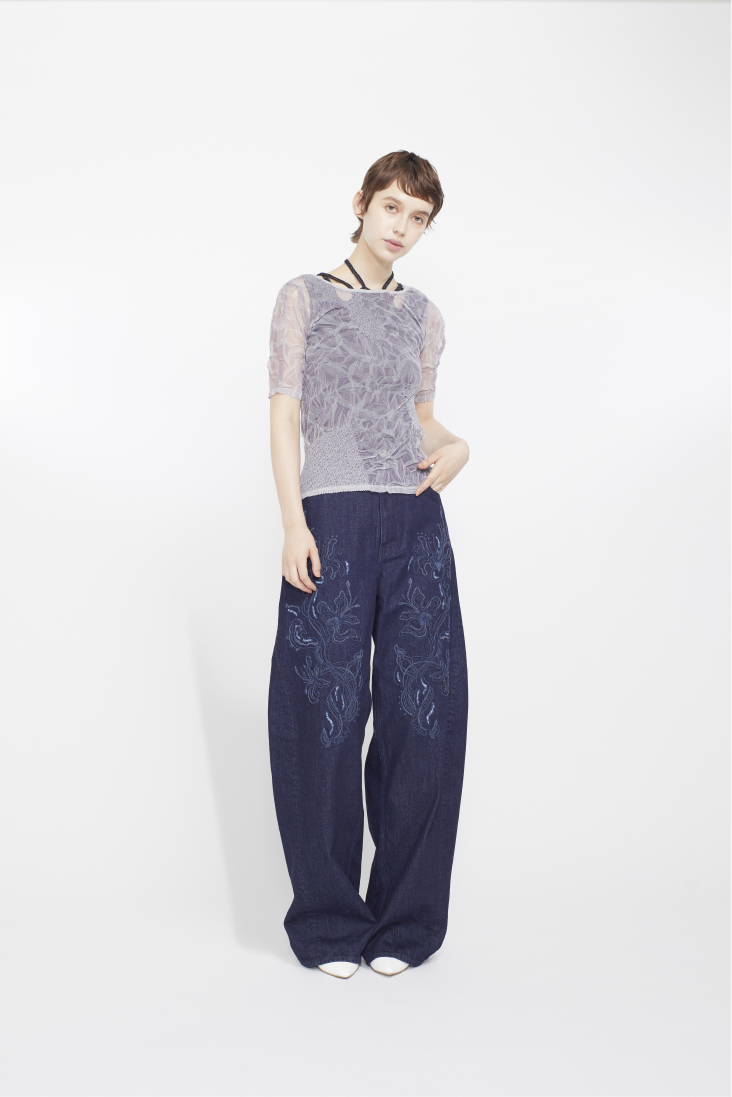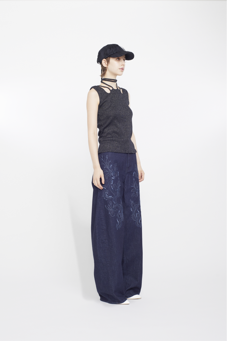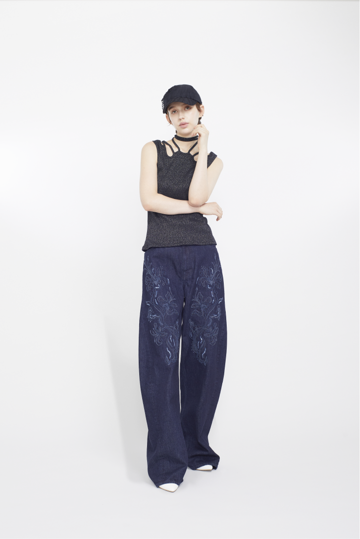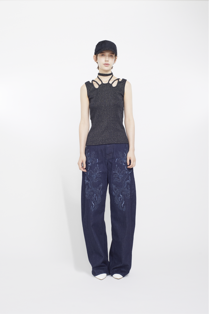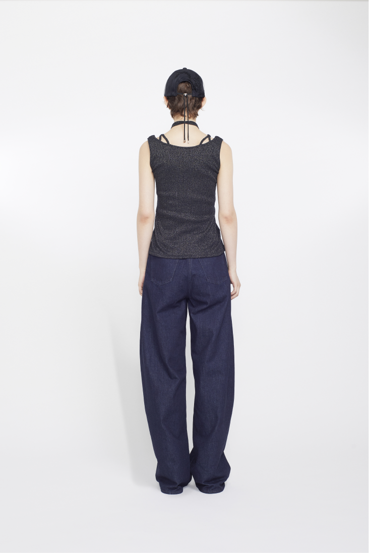 首元のバインダーは、後ろで結んだりチョーカーのように巻き付けたり様々なアレンジが楽しめる。ご家庭で手洗いが可能でデイリーシーンに彩りを与える1着。今季は定番のリブ素材に加え、染色耐久性のあるラメ糸を使用したリブ素材のIvyシリーズが新しくラインナップ。肌触りも良く、スタイリングのアクセントに最適。