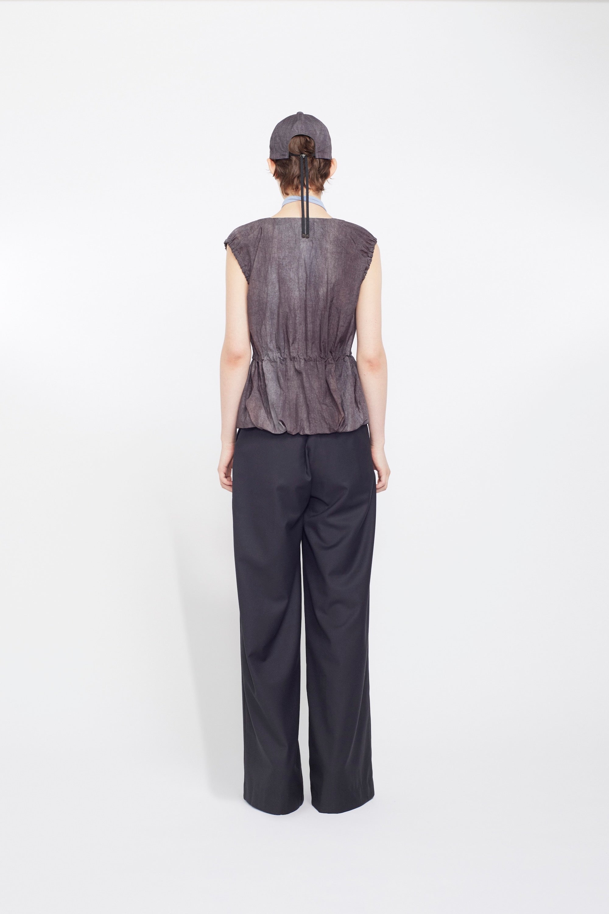 スリーブレスのトップスはギャザーやドローストリングのディテールを活かし、抑制の利いた繊細で丸みのあるシルエットを構築。カラーリングとフォルムを活かし、レイヤードアイテムとしてもおすすめな1着。