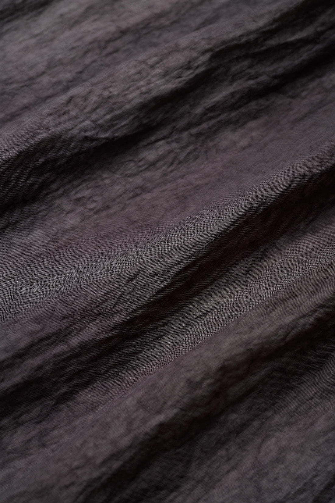 ミニマルでソリッドな佇まいのナイロンジャケットは、フード部分や裾部分のドローストリングの調節で膨らみのあるフォルムを構築しシルエットに自由な表現をもたらしている。デニムとのカジュアルなスタリングやスラックスとのシックなコーディネートなど表現の幅が豊かな1着。