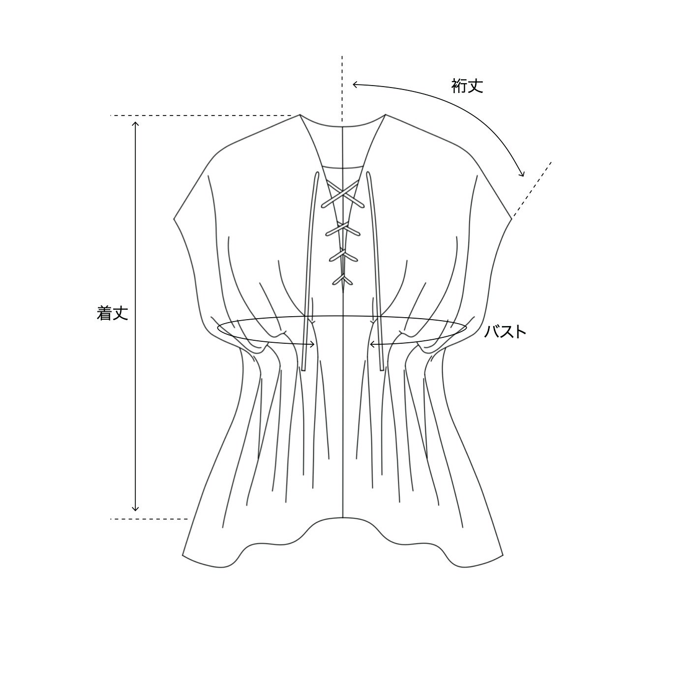胸元に施された刺繍は香川県にて制作。ジャカード刺繍と2種類のコード刺繍を組み合わせ、レースアップディテールと刺繍を一体化した繊細かつ立体的なデザイン。