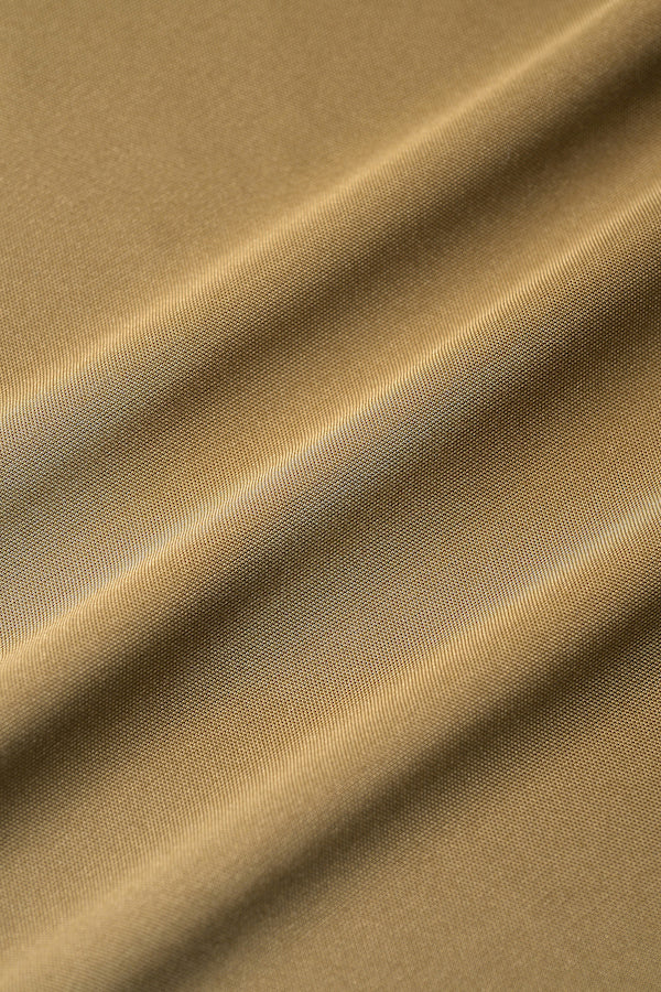 前後合わせ4箇所の切り替えから生み出されるドローストリングはシルエットに自由な表情を与える他、着丈のアレンジも可能。生地にはシャンブレーによる深みのある色合いが特徴のチュール素材を採用。肌触りも滑らかな柔らかいチュールで仕上げることによりフォルムに繊細さを生み出している。