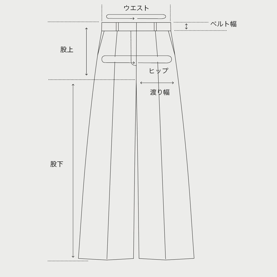 | ウエスト | ヒップ | 股上 | 股下 | 渡り幅 | |