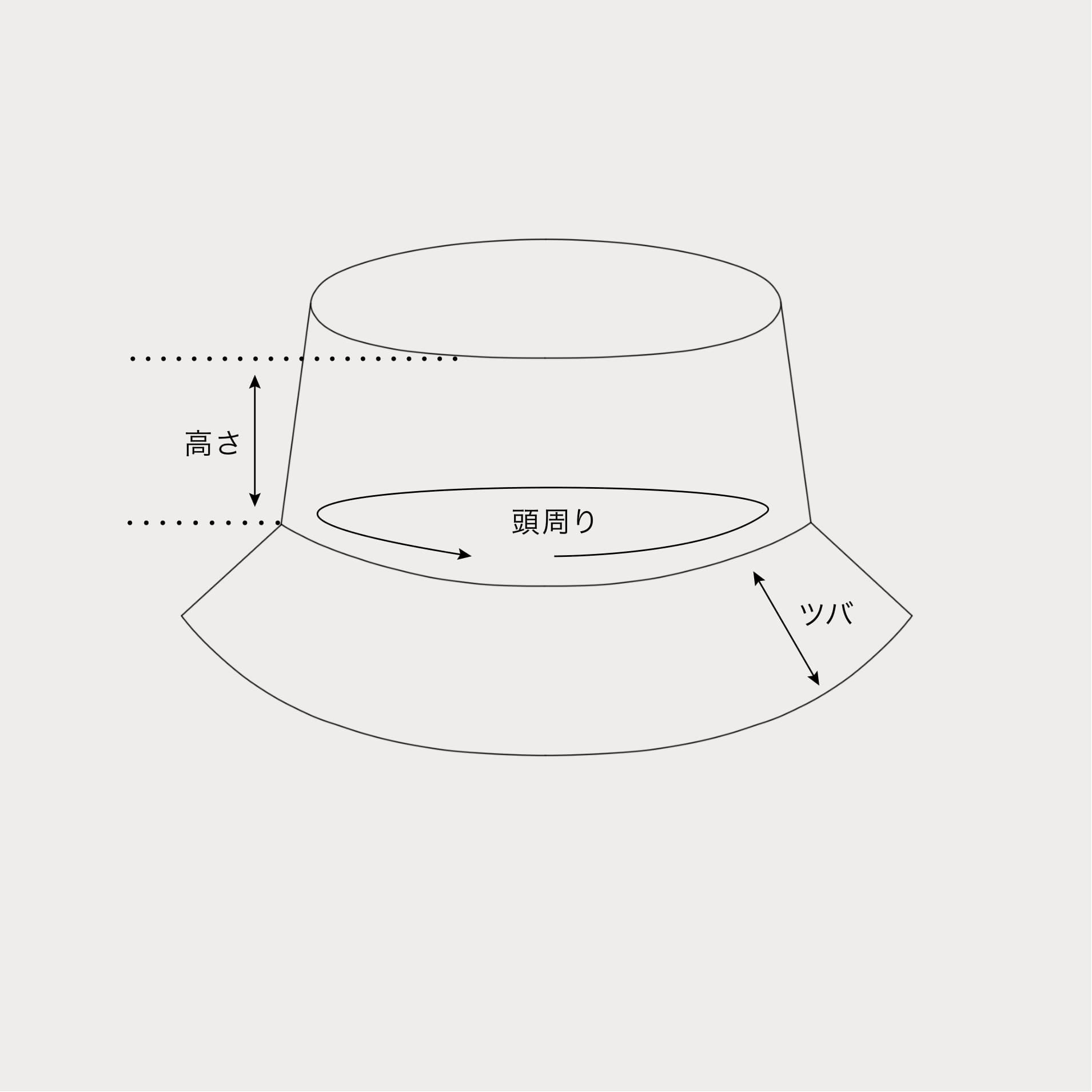 | 高さ | 頭周り | ツバ | |