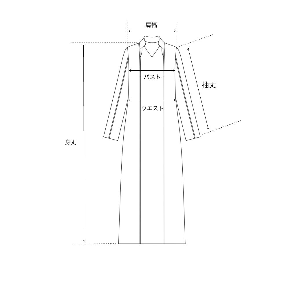 | 身丈 | バスト | ウエスト | 袖丈 | 肩幅 | |